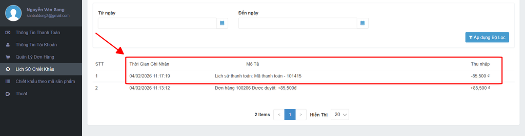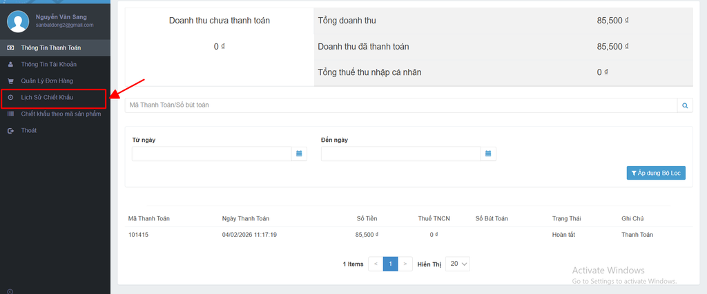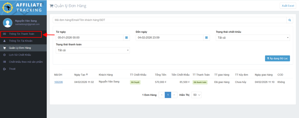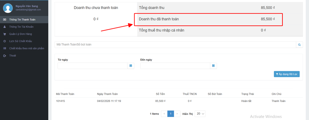 V. Nhận Thanh Toán Hoa Hồng