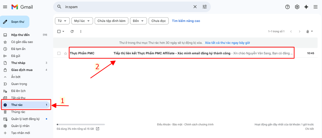 I. Kiểm Tra Email khi được duyệt tài khoản : bạn nên vào thư mục "Thư Rác" để kiểm tra